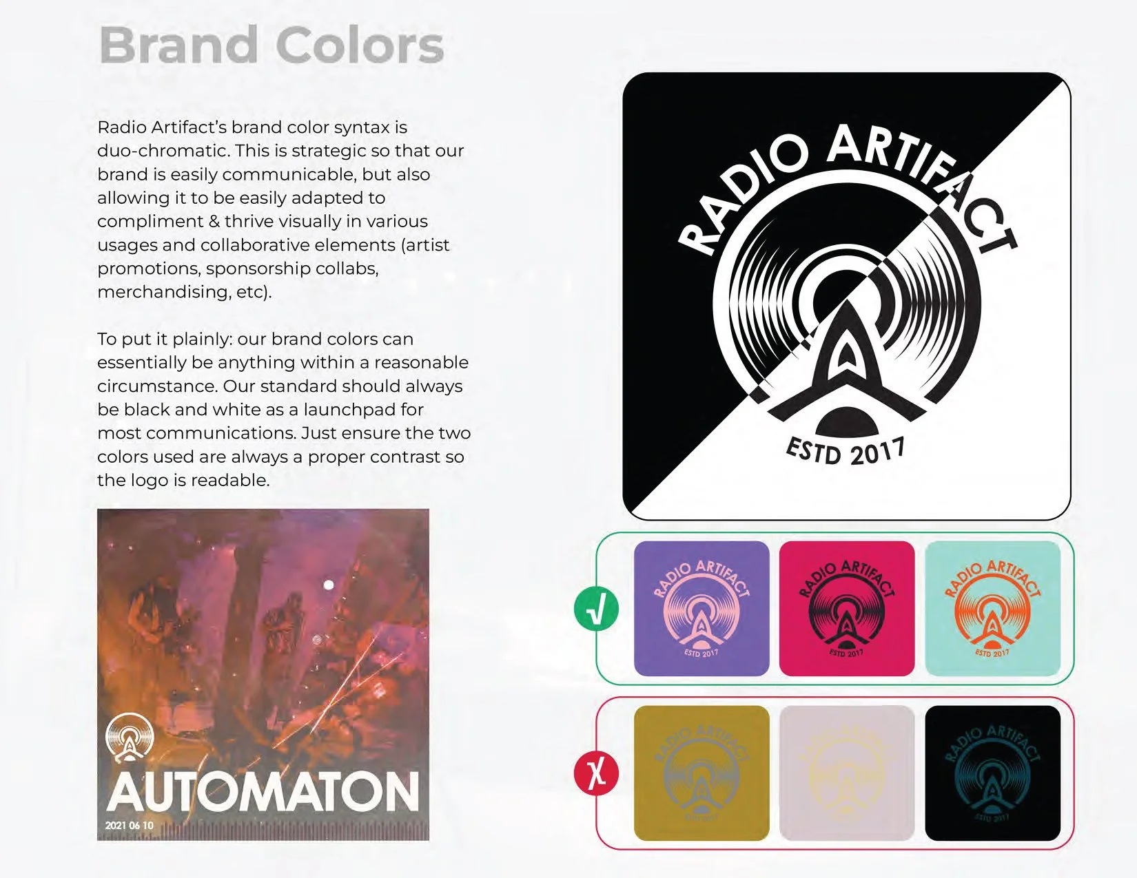This enables not only the logo to showcase the literal pieces of what makes up the Radio Artifact brand, but also symbolizes it’s multifacetedness in the services and space that it provides to both musicians and audience members alike!